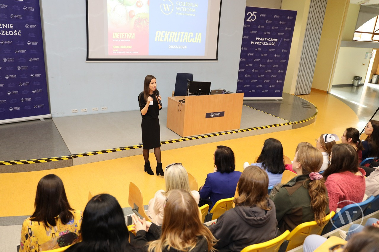 Nauczyciele akademiccy oraz studenci Pielęgniarskiego Koła Naukowego przygotowali prelekcje dotyczące zalet kształcenia na kierunkach Pielęgniarstwo, Położnictwo, Ratownictwo medyczne, Fizjoterapia i Dietetyka. Na uczniów czekała masa atrakcji m.in. zwiedzanie pracowni i laboratoriów, udział w pokazach a także dietetyczny poczęstunek. Witelonka dziękuję za odwiedziny.