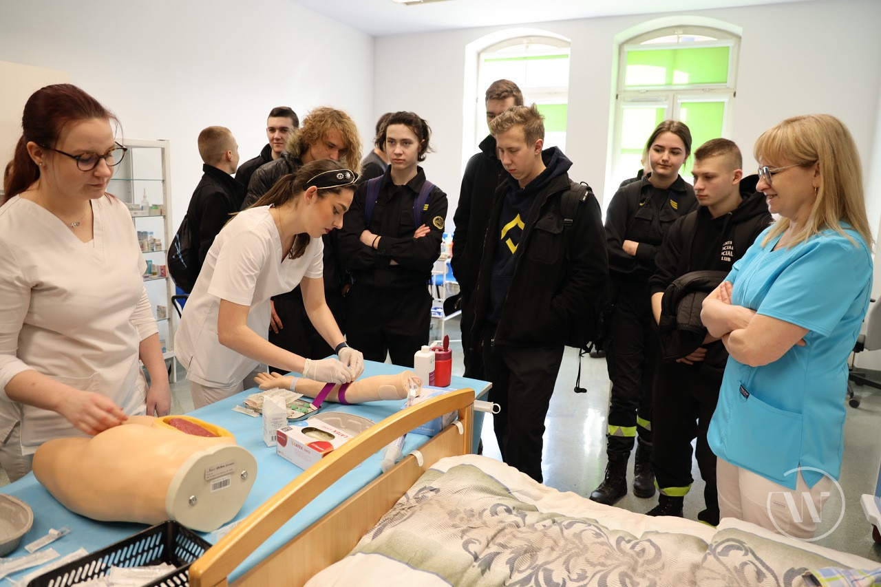 W ramach warsztatów edukacyjnych Witelon w Zespole Medycznym, młodzież miała okazję zgłębić nie tylko tajniki anatomii z wykorzystaniem multimedialnego stołu anatomicznego, ale również uczestniczyć w akcji udzielania pomocy medycznej ofiarom pożaru.
