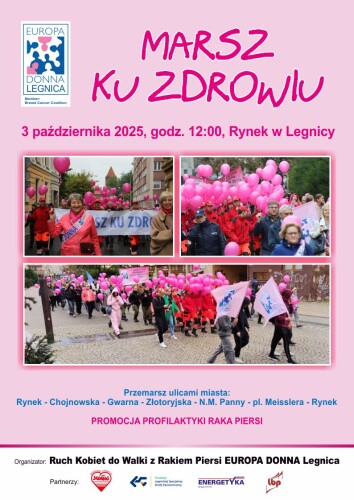 Serdecznie zapraszamy wszystkich słuchaczy Uniwersytetu Trzeciego Wieku do udziału w Marszu Profilaktyki Raka Piersi, który odbędzie się 3 października 2025 r. (piątek) o godz.12.00 w Rynku w Legnicy.