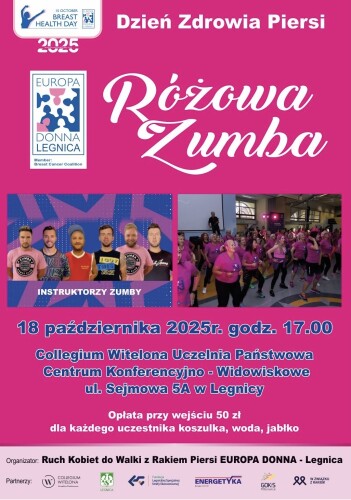 Zapraszamy wszystkich słuchaczy UTW na Różową Zumbę w ramach wsparcia Ruchu Kobiet do Walki z Rakiem Piersi EUROPA DONNA - Legnica