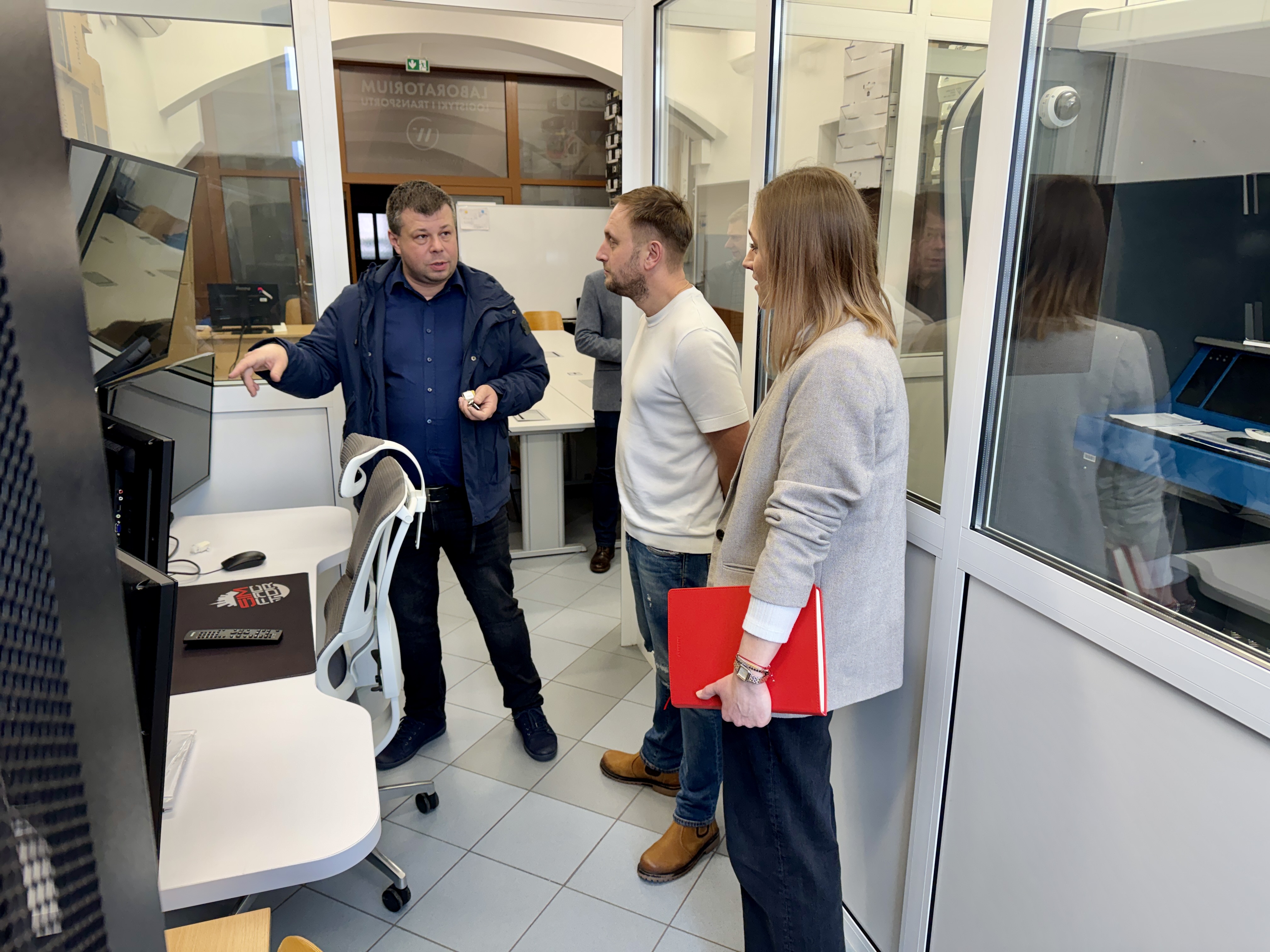 Nasi Goście poznali infrastrukturę Uczelni - zaplecze technologiczne, w pełni wyposażone Centrum Konferencyjno-Widowiskowe oraz profesjonalne studio nagrań. To przestrzenie, które wspierają rozwój kompetencji przyszłych specjalistów i umożliwiają realizację projektów na styku nauki i biznesu.