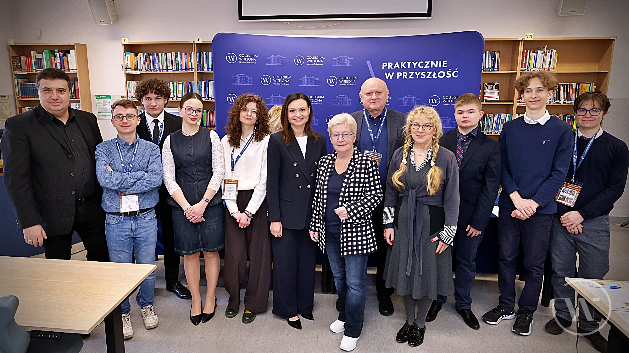 Uroczyste zakończenie w Sali E1 Collegium Witelona zgromadziło przedstawicieli władz Uczelni, Stowarzyszenia „Wspólnota Akademicka”, samorządu, partnerów, sponsorów, opiekunów oraz finalistów z wielu miast Polski. To właśnie ta obecność tylu osób zaangażowanych w edukację i rozwój młodych ludzi najlepiej pokazuje, jak ważnym wydarzeniem stała się Olimpiada. Najbardziej wyczekiwanym momentem było oczywiście ogłoszenie zwycięzcy. Tytuł zwycięzcy XIX Olimpiady Mediewistycznej A.D. 2026 zdobył Jeremi Rusin, uczeń V Liceum Ogólnokształcącego im. Augusta Witkowskiego w Krakowie. W gronie laureatów znaleźli się również: Antoni Droździewicz, Alicja Kwapiszewska, Maria Majsak oraz Antoni Rybicki – uczniowie V Liceum Ogólnokształcącego im. Augusta Witkowskiego w Krakowie, Szymon Wąsowicz – uczeń VI Liceum Ogólnokształcącego im. Adama Mickiewicza w Krakowie, a także Piotr Olech – uczeń XVIII Liceum Ogólnokształcącego im. Jana Zamoyskiego w Warszawie. Podczas uroczystości wyróżniono również finalistów i ich opiekunów, bo za każdym takim sukcesem stoją nie tylko talent i praca uczniów, ale także codzienne wsparcie nauczycieli. Wyjątkowym momentem było także wręczenie nagrody specjalnej w konkursie wiedzy o bitwie legnickiej 1241, ufundowanej przez Wójta Gminy Legnickie Pole oraz Fundację Legnickie Pole 1241. Otrzymał ją Szymon Wąsowicz, uczeń VI Liceum Ogólnokształcącego im. Adama Mickiewicza w Krakowie. Otrzymał Medal Henryka II Pobożnego nadany przez Fundację Legnickie Pola 1241, wręczył go Pan Marek Mojecki, członek Rady Fundacji w roli księcia Henryka. Statuetkę Wójta Gminy Legnickie Pole Rafała Plezia i nagrodę w kwocie 700 zł w postaci karty zakupowej w sieci Empik. Cieszymy się również z obecności naszych uczniów – Oliwiera Kobiaka, Weroniki Umżyńskiej i Khrystyny Fijałko, którzy z dumą reprezentowali Akademickie Liceum Ogólnokształcące im. Witelona w Legnicy.