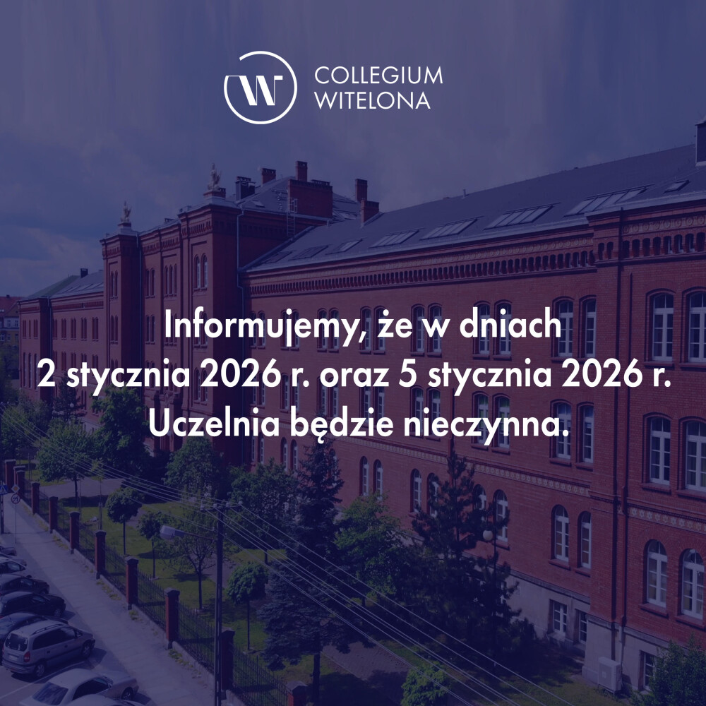 Informujemy, że w dniach 2 stycznia 2026 r. oraz 5 stycznia 2026 r. Uczelnia będzie nieczynna.
