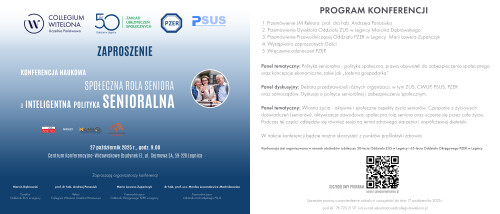 W imieniu organizatorów mamy zaszczyt i ogromną przyjemność zaprosić Państwa do udziału w wyjątkowym wydarzeniu - konferencji naukowej pt. „Społeczna rola seniora a inteligentna polityka senioralna”