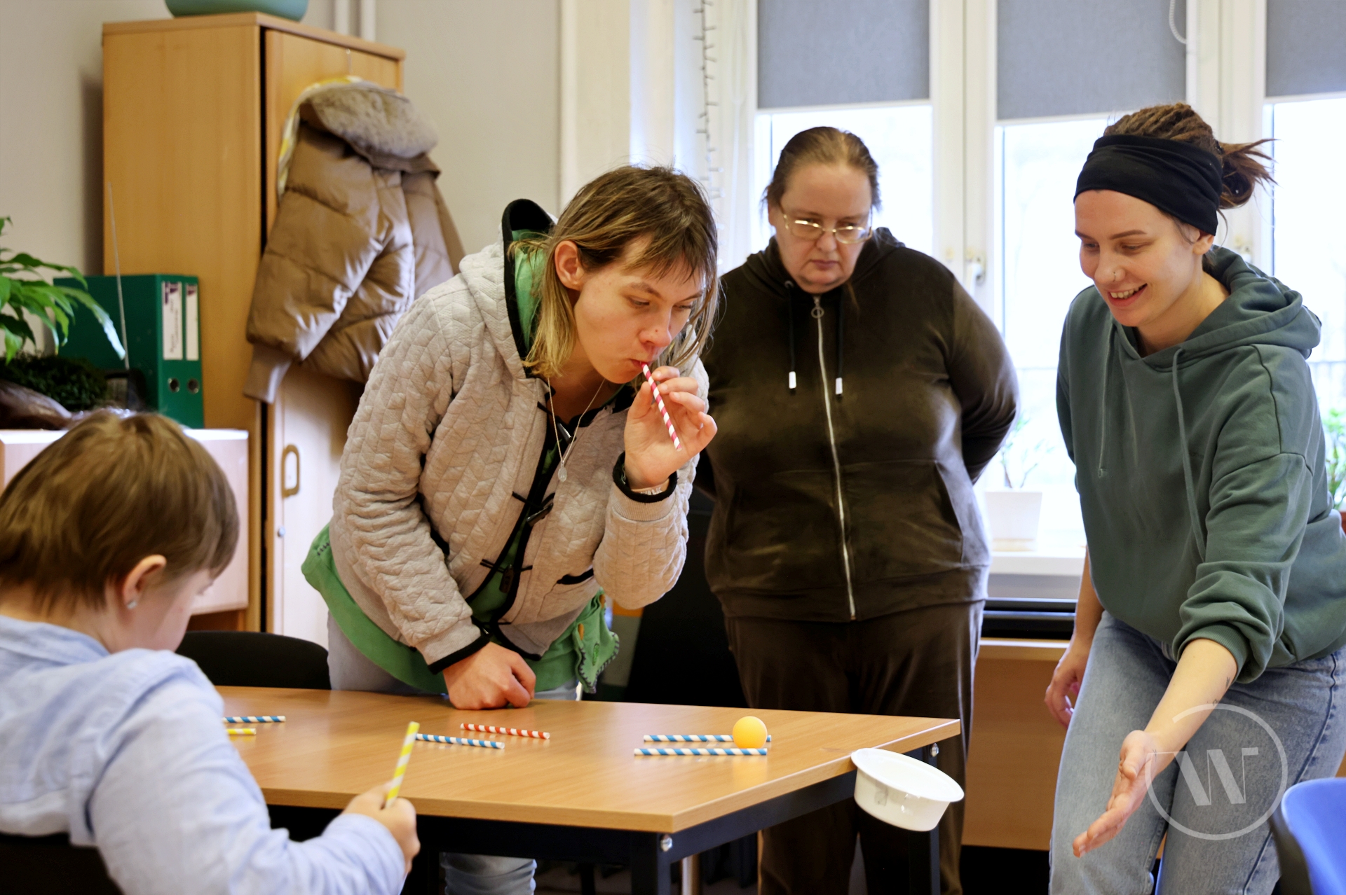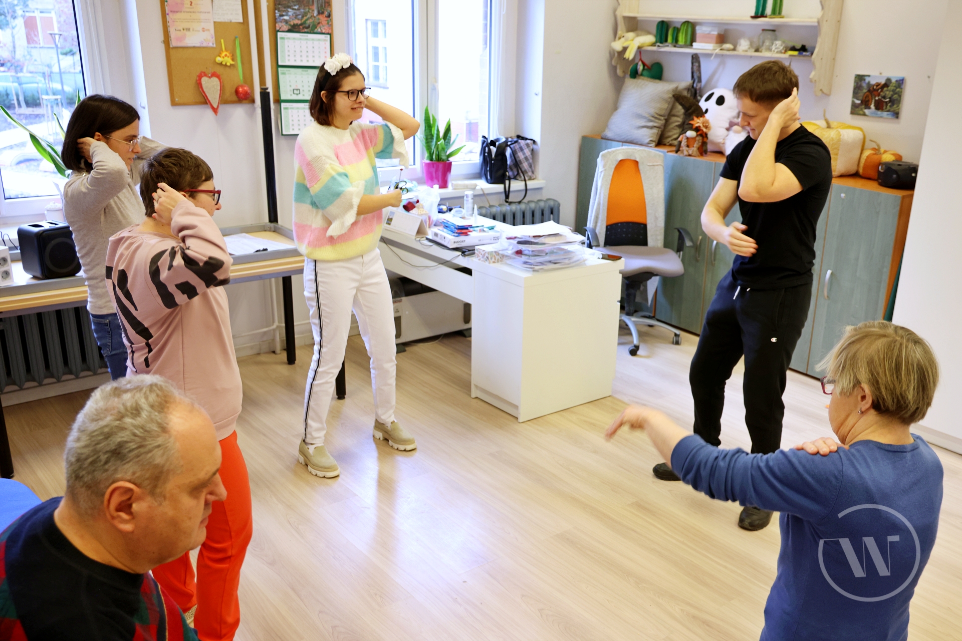 . Wzięli udział w zajęciach z podopiecznymi Warsztatów Terapii Zajęciowej ze Stowarzyszenia Przyjaciół i Rodziców Osób z Upośledzeniem Intelektualnym „Jutrzenka” w Legnicy., gdzie przyjęła ich Pani Justyna Wąsik wraz z zespołem terapeutów.