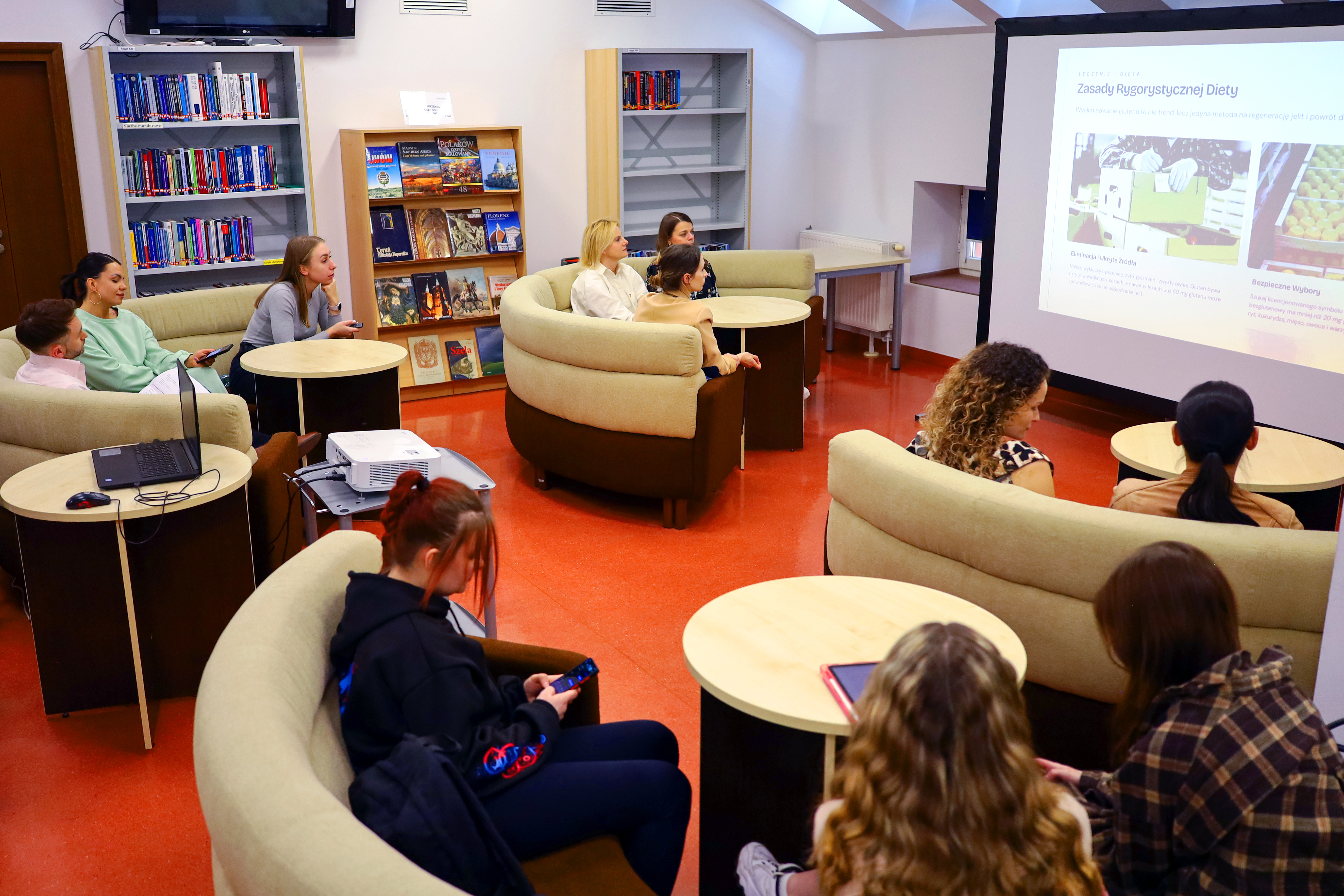11.03.2026 r. odbyło się spotkanie w ramach cyklu BIBLIOTEKA na BIS pt. „Gluten i laktoza – moda czy konieczność?”, zorganizowane przez Bibliotekę oraz Studenckie Koło Naukowe Dietetyków.