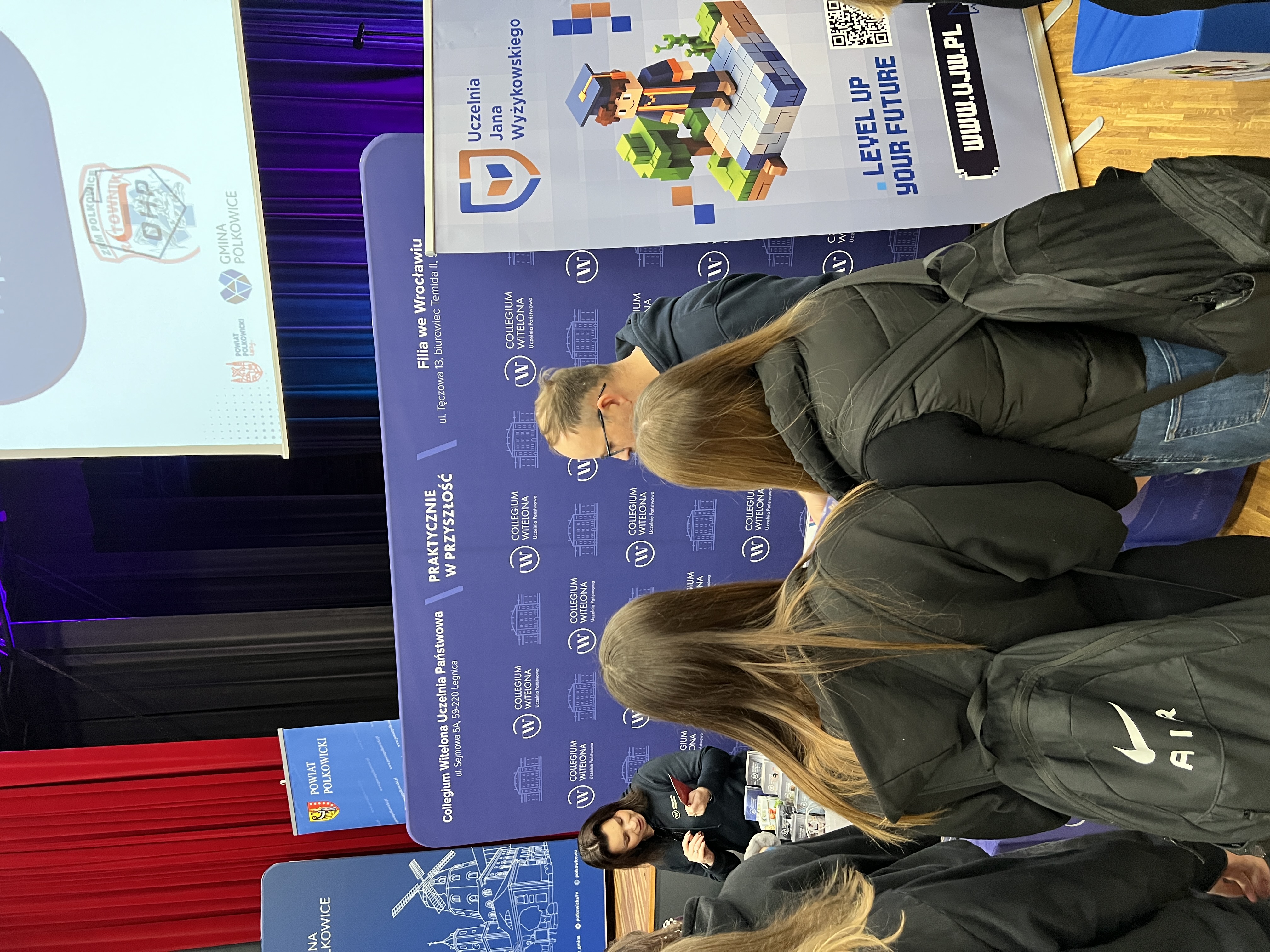 Podczas targów uczestnicy mieli okazję poznać bogatą ofertę kształcenia Collegium Witelona, porozmawiać z przedstawicielami naszej Uczelni i uzyskać informacje na temat kierunków studiów, praktyk oraz możliwości rozwoju zawodowego. Stoisko Collegium cieszyło się dużym zainteresowaniem, a rozmowy z uczniami pokazały, że młodzież coraz chętniej sięga po nowoczesne formy edukacji i praktyczne kierunki studiów.